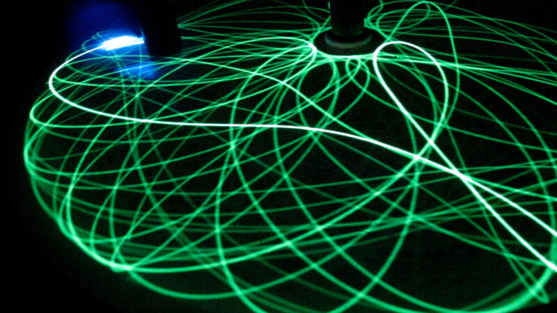 Set this kinetic sculpture in motion to explore how our decisions affect the world around us. Beautiful cyclic patterns or jumbled chaos? Where is the tipping point?